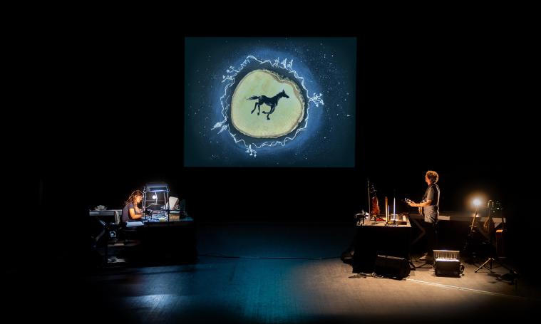 Concert dessiné et animé - Durée : 45 min - Dès 6 ans - Bercés par une musique organique et hypnotique, les êtres de la montagne s'endorment : humains, animaux domestiques ou sauvages, proies ou prédateurs, tous se retrouvent en rêve pour une trêve bienvenue. Dans ce territoire commun, les échelles de temps et d'espace s'entremêlent et se confondent : un battement d'aile dure une saison, les stalactites grandissent à vue d'oeil... Tandis que les timbres des instruments acoustiques tissent un canevas pour la rêverie, le geste du dessin est guidé par le temps de la musique et les liens qui unssent les différents cycles du vivant se révèlent, immémoriaux, inattendus. Une dizaine d'instruments sont joués et parfois bouclés par Simon Kansara : fl^tes irlandaises, banjo, accordéon, violon, percussions, mélodica... cette diversité offre un large éventail de timbres pour des compositions.