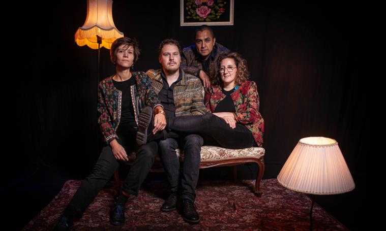 Sur scène, JAVOTTE déploie un univers chaleureux et légèrement décalé, presque « salon », où l'élégance côtoie l'exubérance sonore. Les compositions de Lucie naissent souvent d'élans spontanés — une idée surgie au détour d'un instant du quotidien — puis prennent toute leur ampleur dans le travail collectif du quartet.
