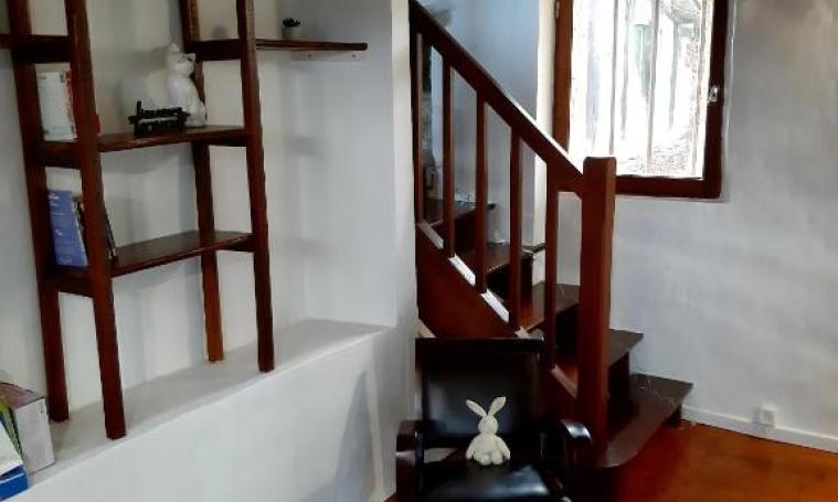 Jolie maison atypique à la campagne comprenant 3 chambres, cuisine / salle-à-manger, salle d'eau, bibliothèque.