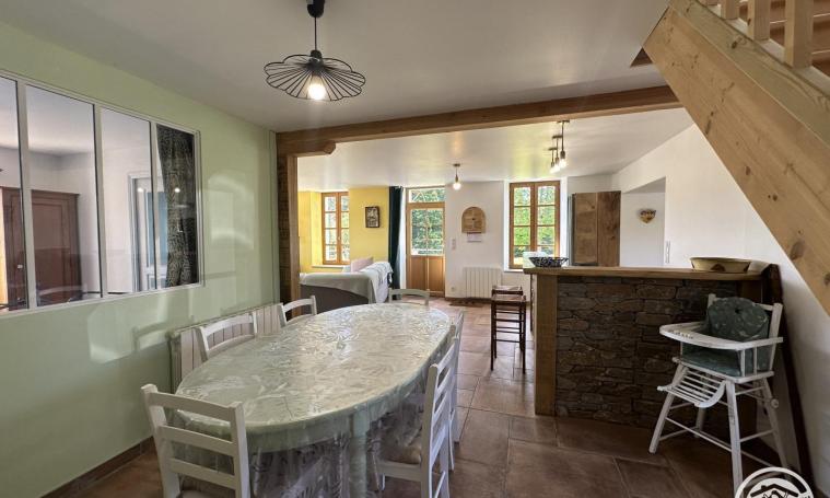Située au coeur d'un grand parc verdoyant et arboré, en plein cœur du plateau de Millevaches, charmante petite maison indépendante entièrement rénovée avec une superbe vue panoramique sur la nature environnante et notamment le Massif du Sancy. La maison se compose au rez-de-chaussée d'un salon / salle à manger avec un bar et une cuisine entièrement équipée y compris machine à laver le linge (1 petite marches pour rejoindre la cuisine), ainsi qu'une chambre disposant d'un lit en 140. A l'étage, vous trouverez une salle d'eau, un WC et deux autres chambres (une avec un lit en 140 l'autre avec deux lits en 90 jumelables au besoin). Une grande terrasse est à votre disposition pour prendre vos repas au grand air. Pour nos amis cyclistes, un abri de rangement (fermé à clé) est disponible pour stocker vos vélos (6 vélos environ).