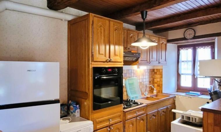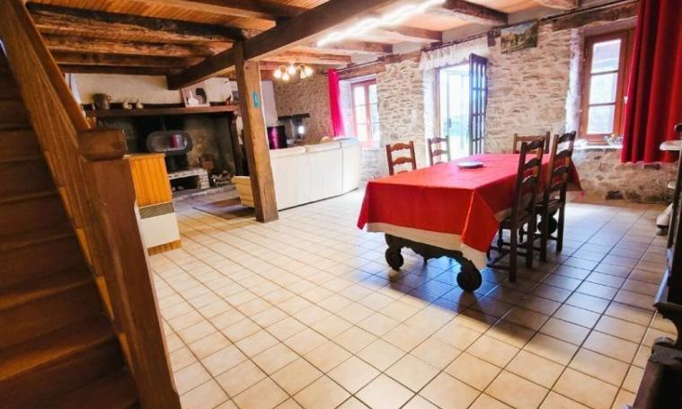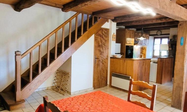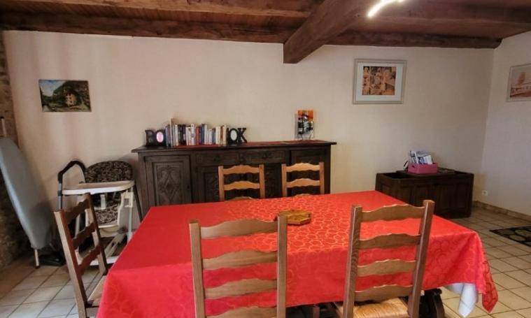 Cette maison indépendante, située à proximité de l’église du village, offre un cadre confortable et chaleureux. Au rez-de-chaussée, vous trouverez une salle à manger avec coin cuisine et coin salon, équipée d’un poêle à bois (bois fourni) et du chauffage électrique, ainsi que des WC indépendants. Une agréable véranda s’ouvre sur le terrain partiellement clos, aménagé avec un salon de jardin et un barbecue, idéal pour profiter des beaux jours. À l’étage, trois chambres vous attendent : une avec un lit double en 160 cm, une autre avec un lit en 140 cm, et une troisième avec un lit en 90 cm et un lit bébé. La salle de bain, avec baignoire et WC, complète ce logement confortable pour toute la famille.