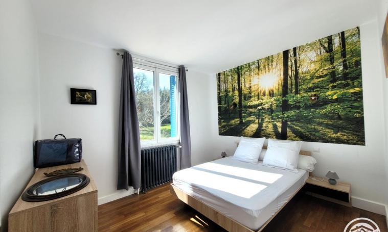 Le gîte se compose sur le même niveau : D'une pièce de vie avec coin cuisine aménagée et équipée, salle à manger et salon avec poêle à bois accès terrasse. Une chambre avec un lit double de 140 cm, une chambre avec un lit double de 160cm et un lit simple de 90cm. Une salle d'eau (douche) avec WC. Un autre WC indépendant. Stationnement et Wifi L'accès à l'entrée se fera par quelques marches et/ou par une rampe d'accès pour personne à mobilité réduite. Les atouts du Gîte : JARDIN CLOS et Arboré avec VUE SUR LE LAC DE MARCILLAC (salon de jardin, hamac) SITUATION IDÉALE (à proximité du lac et des commerces) Le prix comprend : Les draps et le linge de toilette L'électricité et bois fournis Le prix ne comprend pas : Le ménage en option 50€/séjour Gîte Labellisé Accueil Vélo par Corrèze Tourisme