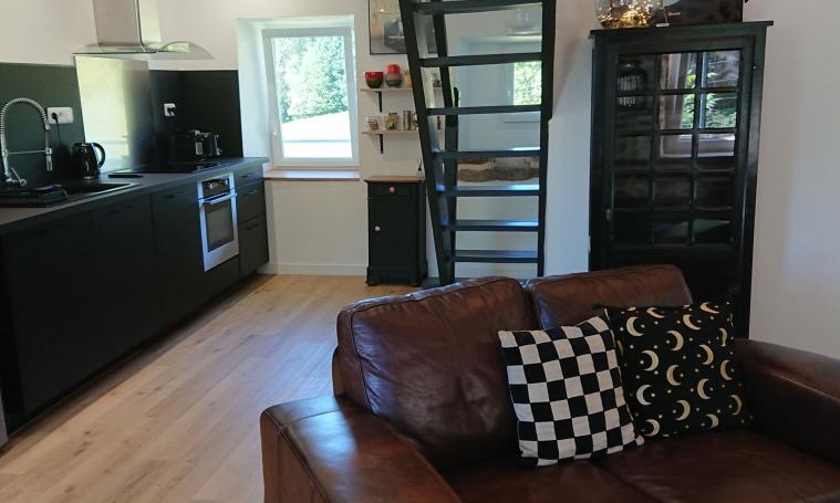 Cette maison de vacances de 40 m² entièrement rénovée se compose, au rez-de-chaussée, d' un espace salon/cuisine équipée (plaque induction, bouilloire, grille-pain, cafetière Nespresso, réfrigérateur/congélateur, four, four micro-onde) et d'une salle d'eau (douche) avec WC. Poêle à granulés dans le séjour. Pour votre confort, la climatisation a été installée.