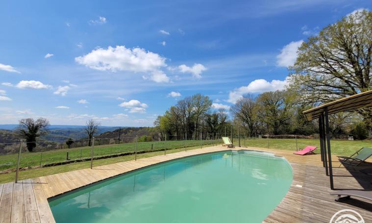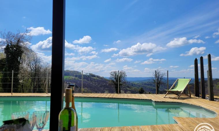 De ce terrain clos de 2000m2, à 500 mètres d'altitude, situé dans un petit village suspendu sur les coteaux de la Dordogne avec une vue imprenable sur la vallée du Lot et de ses causses, vous pourrez vous détendre dans un calme absolu et sans vis-à-vis. Située sur le versant sud de ce hameau, notre bergerie restaurée et orientée au soleil de midi vous permettra de profiter pleinement du bonheur des départements du Sud Ouest. Cette rénovation accompagnée d'architectes intérieur et extérieur font de ce gîte de charme une habitation de plain pied au grand confort. L'utilisation de matériaux nobles et écologiques en fait une demeure basse consommation.