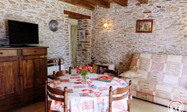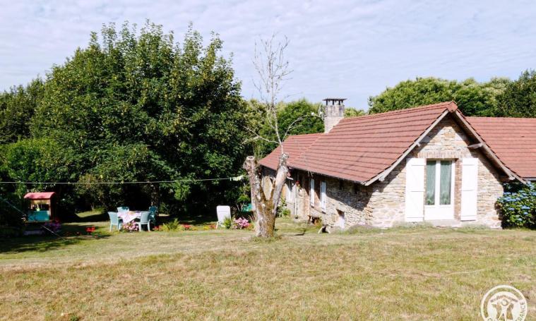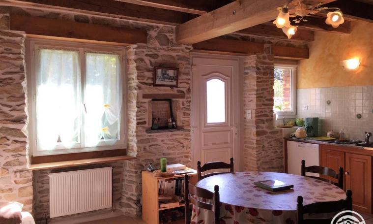 Vous apprécierez son grand confort, son intérieur ancien : poutres apparentes, vieilles pierres, décoration soignée. Accueil chaleureux. L'entrée passée, vous apprécierez ce logement sur un seul niveau. La cuisine ouverte sur le séjour offre de beaux moments de convivialité. La première chambre dispose d'un lit en 140x190 cm, la deuxième de lits superposés de 90 x190 et d'un lit à barreaux. La salle de douche avec double vasque et lave-linge est indépendante des wc. Tout pour des vacances de rêves au vert. Balançoire, toboggan, petite roulotte, bac à sable pour enfant. Chaises relax, table de jardin avec chaises. TOUT INCLUS
