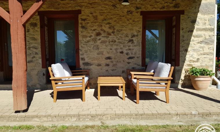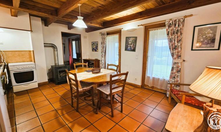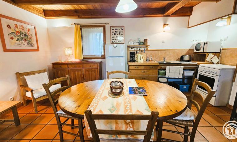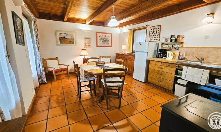 Cette charmante maison, située à proximité de la maison du propriétaire, se compose au rez-de-chaussée, d'une cuisine, d'une chambre avec un lit de 140 cm, d'un WC indépendant et d'une salle d'eau. À l'étage, dans la mezzanine, vous trouverez un coin salon équipé d'un canapé et d'une télévision, ainsi qu'un espace de rangement et une seconde zone avec deux lits d'une personne. Une belle terrasse couverte vous permettra de prendre vos repas ou de vous prélasser après vos journées de visite, aux beaux jours. Un lave-linge est à votre disposition pour votre confort. INCLUS : Draps, eau, électricité, chauffage et forfait ménage.