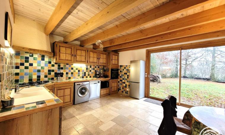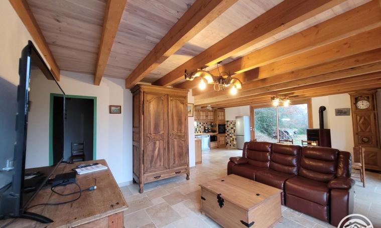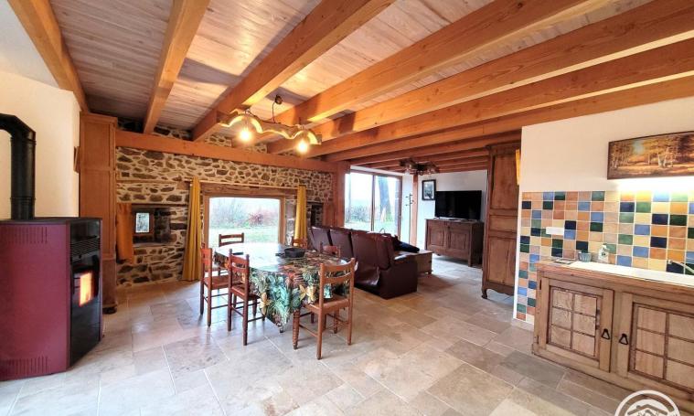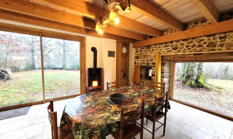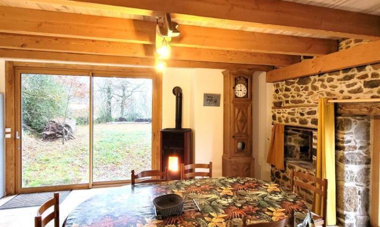 Au bout de la route, cette ancienne grange joliment rénovée de pierres et de bois apparents vous ravira. Située au cœur d'un paysage de bois et sentiers sauvages qui vous guideront jusqu'à un charmant petit étang de 3 000m, à la rencontre des champignons. Vous pourrez apprécier le calme et la beauté du Plateau de Millevaches. (Un des plus grands réseaux VTT labellisé FFCT de France avec plus de 1 000 km de circuits). A 300 m du bourg, altitude 780 m.