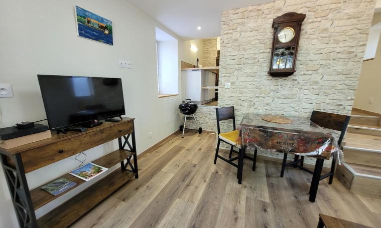 Situé au cœur de la campagne corrézienne, ce gîte douillet est idéal pour un séjour à deux, mêlant confort moderne et authenticité. Vous y trouverez une pièce de vie conviviale avec un coin salon et un espace salle à manger. Quelques marches mènent à une cuisine aménagée et entièrement équipée, parfaite pour préparer vos repas comme à la maison. Le gîte dispose d'un WC indépendant pour plus de confort. À l'étage, accessible par un escalier à pas japonais, se trouve une chambre cocooning avec un lit double (160x200) et sa salle d'eau privative. Vous profiterez également d'un espace extérieur agréable avec terrasse, petite table ronde et fauteuils, parfaits pour un moment de détente. Un stationnement sécurisé est disponible dans la propriété, fermée par un portail. Le gîte est climatisé et équipé du Wi-Fi.