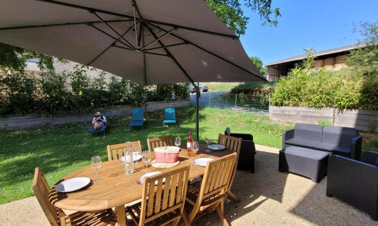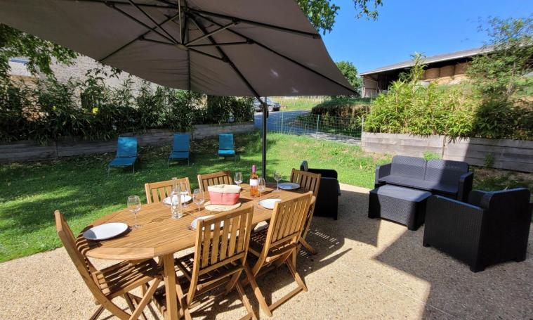 Le gîte se compose: D'une belle pièce de vie très lumineuse avec cuisine complètement aménagée et équipée et un coin salon donnant un accès direct à la terrasse. Au 1er étage: 2 chambres avec lits de 140x190, une salle d'eau et un WC indépendant. Parking dans la propriété Wifi