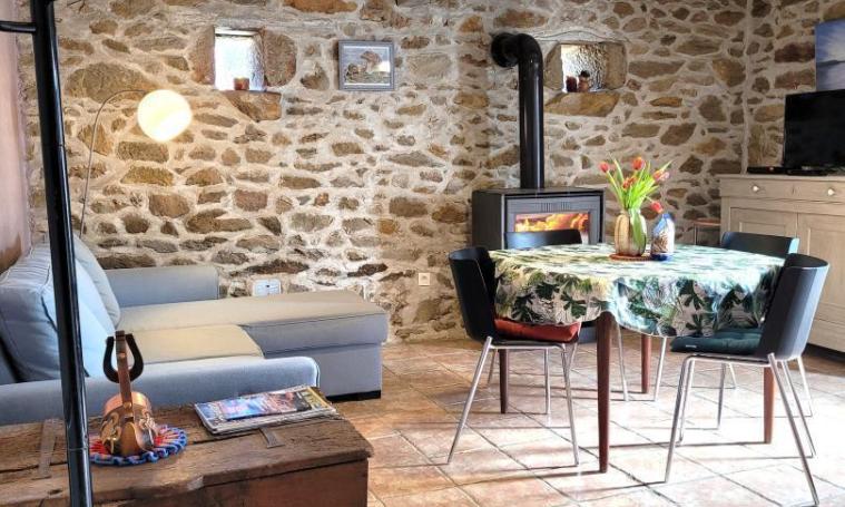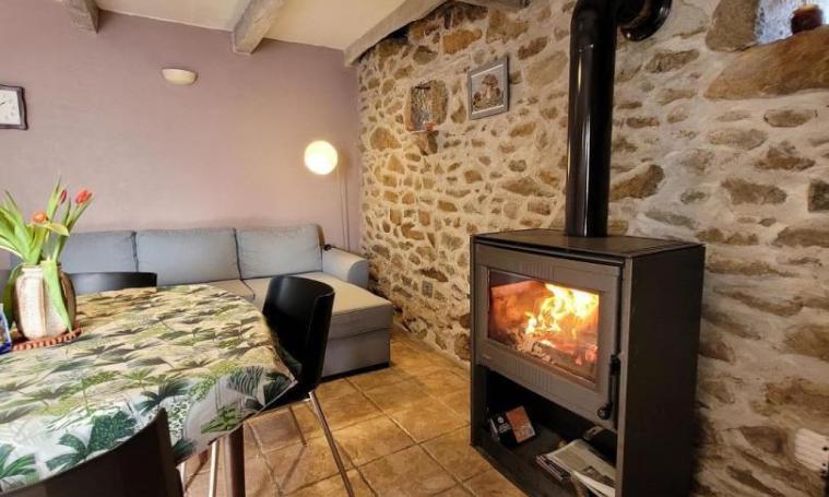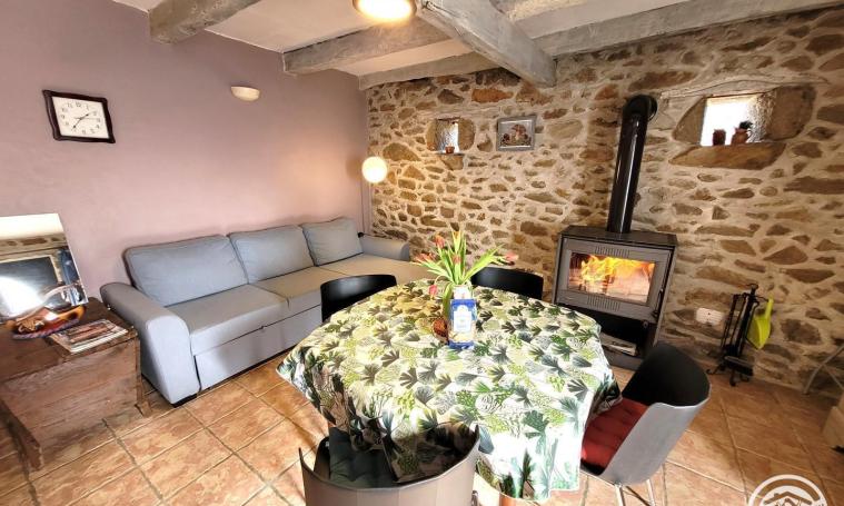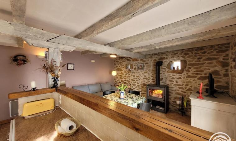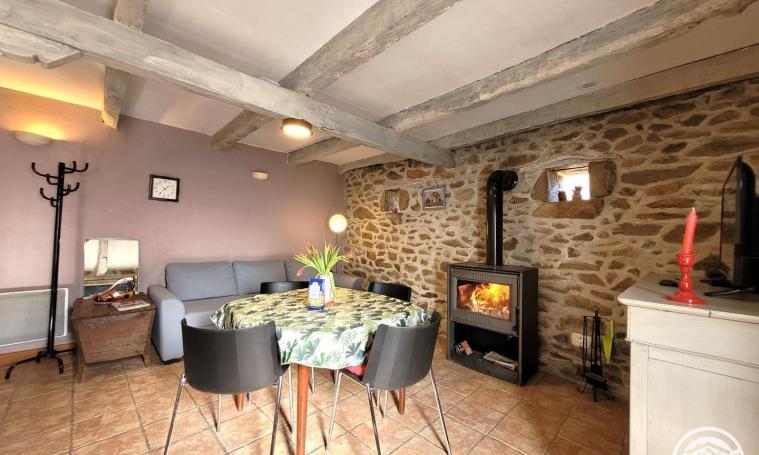 La maison se compose au rez de chaussée, d'une salle de séjour avec canapé et télévision et d'un coin cuisine. La cuisine est équipée d'un réfrigérateur, micro-ondes, lave-vaisselle. Vous accédez à l'étage par un escalier « à pas décalé » qui dessert l'espace « nuit » avec 2 chambres, chacune avec 1 lit 2 places. Salle d'eau (douche) et WC indépendant. Wifi disponible. A l'extérieur, devant la maison, accessible depuis la porte d'entrée, se trouve une terrasse (non close). Le gîte bénéficie également d'un jardin clos (attenant à la maison mais non communiquant), accessible en longeant le côté de la maison. Le jardin dispose d'une table de pique-nique. Le chauffage central est électrique / poêle à bois (bois gratuit). Garage attenant à la maison mais non communicant. Caution animal : 150 €.