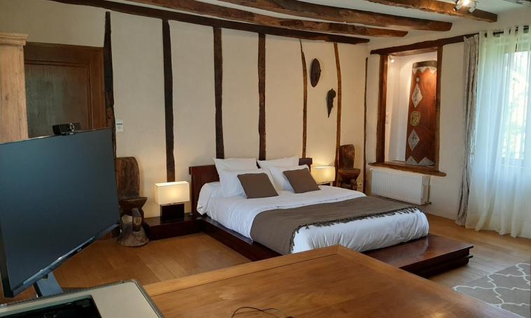 Entrez dans une maison du patrimoine corrézien, découvrez l'art papou, sortez marcher, courir ou pédaler dans un environnement naturel préservé. La maison aménagée pour vivre en famille, au grand calme d'un petit lieu-dit, permet par ses équipements et sa décoration unique de se dépayser, de se ressourcer. Son parc, aux espaces multiples, permettra selon les saisons de profiter de l'ombre de ses grands arbres, de la mi-ombre de ses arbustes ou de ses aires ensoleillées ; de goûter ses nombreux fruits (framboisiers, groseilliers, cerisiers, pruniers, figuiers, …), d'écouter le calme de la nature et le chant des oiseaux en respirant un air pur. Restaurée avec une majorité de matériaux naturels et nobles, les sols en terre cuite, les planchers de chêne et les murs à la chaux, vous garantiront une atmosphère intérieure saine. Saint-Jal, située à mi-hauteur entre les fortes chaleurs du pa ...