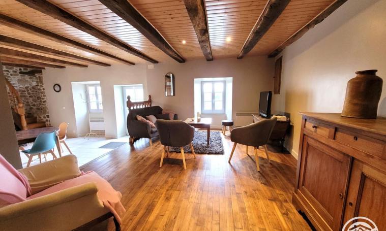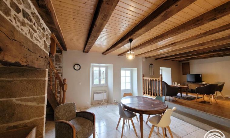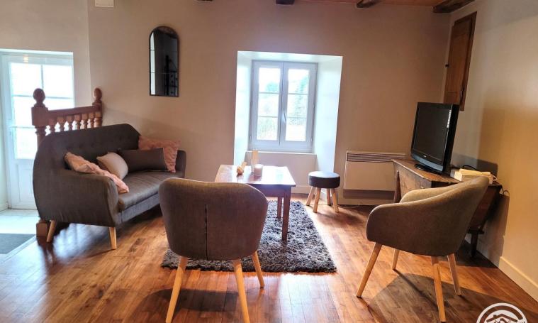 Le gîte se compose au rez-de-chaussée d'une cuisine aménagée et équipée ouverte sur le coin salon (une marche), d'une buanderie et d'un WC avec lave-mains. A l'étage, vous trouverez une chambre avec un lit en 140 et une chambre avec deux lits en 90 ainsi qu'une salle d'eau avec WC. A l'extérieur, vous pourrez profiter d'une belle terrasse et d'un jardin agréable pour vous détendre au grand air. Un Stationnement couvert sera à votre disposition. Certaines options sont non comprises dans le prix (supplément à prévoir)