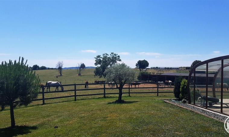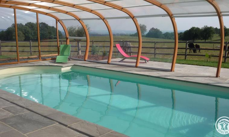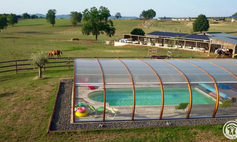 A 2 heures de Toulouse, Bordeaux ou Clermont-Ferrand et 1 heure de Limoges, au sein d'un élevage de chevaux de course, dans un cadre verdoyant et reposant, venez passer d'agréables moments, en famille ou entre amis dans un gîte à la déco soignée, tout confort (chaque chambre possède sa propre salle d'eau /WC, ) avec piscine privée non partagée de 9 x 4 m chauffée, sécurisée par abri haut permettant baignade d'avril à novembre.