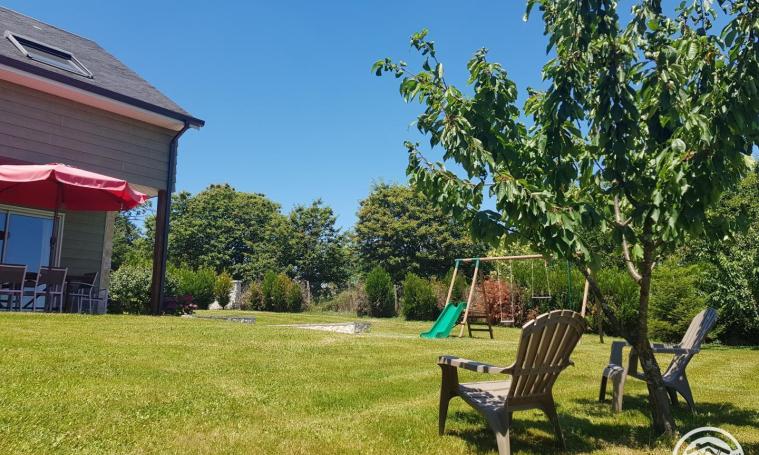 Attenant au garage de la maison des propriétaires, mais totalement indépendant, vous trouverez en rez de chaussée, une agréable et chaleureuse pièce à vivre, avec cuisine ouverte, donnant sur terrasse et jardin clos privatif, et à l'étage, 4 chambres spacieuses et douillettes, pouvant accueillir 9 personnes, climatisées l'été, avec chacune leur salle d'eau et WC. Tout confort, parking privatif, plancher chauffant, volets électriques, équipement bébé très complet, portique et jouets pour enfants, TV, wifi illimitée, chaises longues et salon de jardin, barbecue, produits d'entretien à disposition. Grand choix d'activités (visites, randos, baignade, canoë, pêche...). Installations et boxes pour chevaux pouvant être mis à disposition .