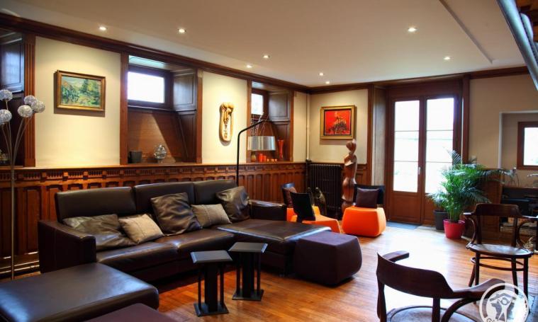 Rez de chaussée: 1 WC - une grande pièce à vivre (séjour/salle à manger,bar) parquets, boiseries et cheminée en pierres (bois fourni) pour accompagner vos belles soirées. Accès direct sur le parc et le jacuzzi. Cuisine dinatoire familiale contemporaine entièrement équipée. 1er étage: petit salon/bureau donnant le passage à 2 chambres. 1 chambre avec douche et WC, lit 160X200) ; 1 chambre avec dressing, lit 160X200. Salle de bain avec 2 vasques et grande douche. Cet aménagement permet une intimité non négligeable aux personnes qui le souhaiteraient. Une salle de jeux pour les enfants et un salon de lecture sont à disposition pour votre confort. Magnifique vue sur la nature. 2ème étage: palier en mezzanine avec 3 couchages (90X140). 1 chambre (2 lits jumelables 90X200), 1 chambre (lit 160X200). Salle de bain avec douche et baignoire et un WC, une caution ménage de 150 € sera demandée. Lits faits et linge de toilette fourni. Garage couvert pour 2 voitures. TOUT INCLUS