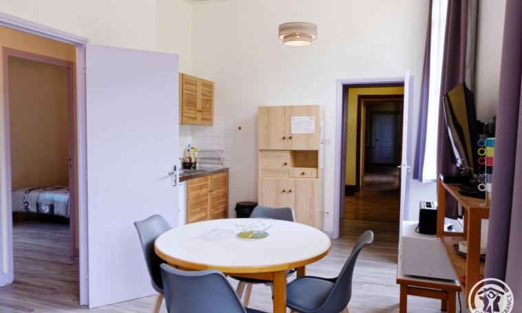 Maison indépendante comprenant 4 gîtes, située sur les bords de la Dordogne, à 9 km de Soursac. Ce gîte situé au rez-de-chaussée se compose d'un séjour avec coin cuisine, une table et 3 chaises et une télévision. Un couchage supplémentaire en 90 sert de canapé dans cette pièce. Le logement se poursuit au même niveau par une chambre avec un lit en 140 x190 cm et une salle d'eau avec WC. Le WIFI est à disposition. Le chauffage électrique est inclus dans la location. Un préau et une salle commune avec une grande télévision, un réfrigérateur, un ventilateur, une machine à café Senseo, un lave-linge collectif, et un four électrique sont également à votre disposition. La cour commune de 450 m² avec meubles de jardin vous permettra de profiter de la quiétude du village. Certaines options sont non comprises dans le prix (suppléments à prévoir). Équipements pour bébé sur demande (baignoire, chaise haute et lit parapluie).