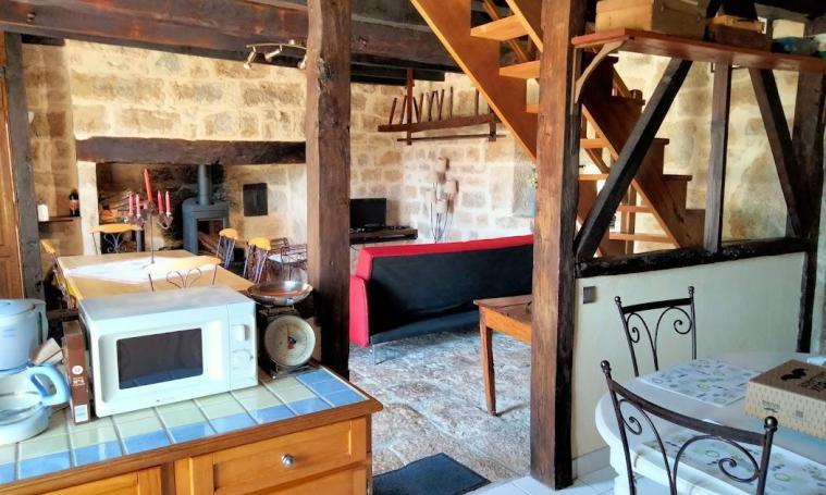 Le gîte se compose au rez-de-chaussée d'un séjour cosy avec poêle à bois, cuisine américaine équipée (four électrique, micro ondes, plaque de cuisson vitro céramique), d'une salle de bain et d'un WC indépendant. A l'étage, vous trouverez deux chambres disposant pour l'une une avec un lit en 140 pour l'autre de deux lits en 90. Dans le jardin, vous trouverez des équipements propices à la détente en famille ou entre amis : jeux pour enfants (toboggan, balançoire), jeux en bois (Molkky, palet breton...), salon de jardin, chaises longues, plancha à gaz et barbecue au charbon. L'accès au gite se fait par un chemin d'accès un peu difficile en voiture. Mais cela en vaut la chandelle !