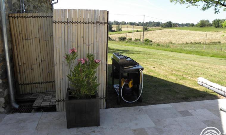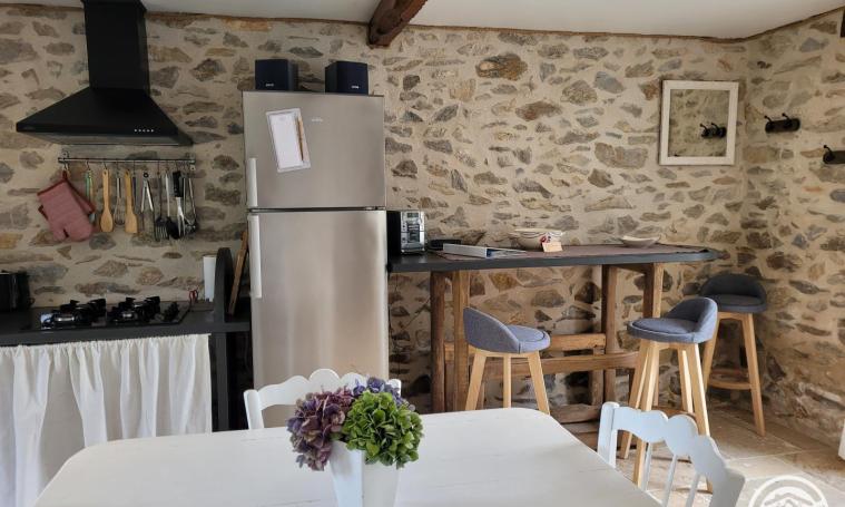 Cette ancienne et charmante bergerie de 45m2, joliment rénovée se compose au rez de chaussée, d'un séjour /cuisine ouvert de 29m2 et après une marche d'une salle d'eau avec wc. Dans ce séjour, présence d'un canapé-lit pouvant accueillir une personne supplémentaire. A l'étage accessible par un escalier pentu, vous attend une confortable chambre sous les combles avec un lit de 160x200. Le gîte donne directement sur une grande terrasse avec store banne, douche extérieure et une piscine donnant sur la nature environnante. Il dispose également d'un terrain de pétanque Parking assuré au sein de la propriété.. Vous trouverez une borne de recharge rapide pour voiture électrique à la sortie 44 de l'autoroute A20 - zone de covoiturage "Beau Soleil" (5 kms du gîte) Au bout d'une petite route menant à un hameau de 3 maisons, le gîte se trouve dans une propriété de 2 hectares dont la maison principale, un peu à l'écart, est occupée à l'année par les parents de la propriétaire.