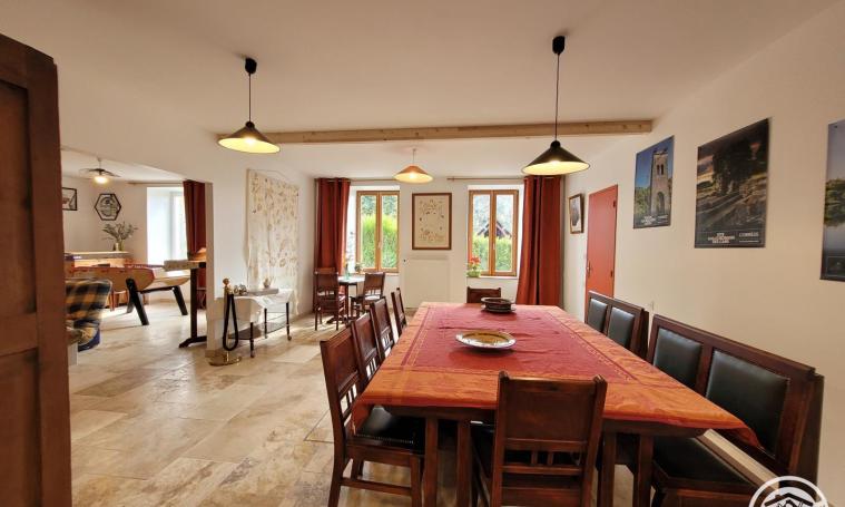 Situé à Meymac, ce gîte spacieux et convivial peut accueillir jusqu'à 6 personnes. Il se trouve dans la même maison que les propriétaires ainsi que deux chambres d'hôtes, tout en bénéficiant d'une entrée totalement indépendante pour garantir votre tranquillité. Au rez-de-chaussée : Vous profiterez d'une grande pièce de vie chaleureuse comprenant : un coin salon avec poêle à bois, idéal pour des soirées cosy, un baby-foot pour petits et grands, un espace salle à manger, une cuisine aménagée et entièrement équipée. Au 1er étage : 3 chambres confortables, chacune équipée d'un point d'eau, 2 chambres avec lits en 160x200, 1 chambre avec lit en 180x200, une salle d'eau indépendante, un WC séparé. Extérieurs et équipements : petite terrasse à l'entrée, parfaite pour profiter des beaux jours, parking public à proximité immédiate du gîte. Ce gîte est idéal pour des séjours en famille ou entre amis, alliant confort, espace et convivialité dans un cadre agréable. Tout inclus "draps, ling