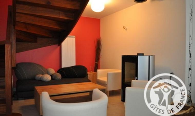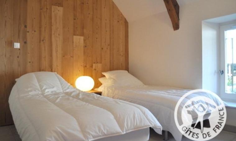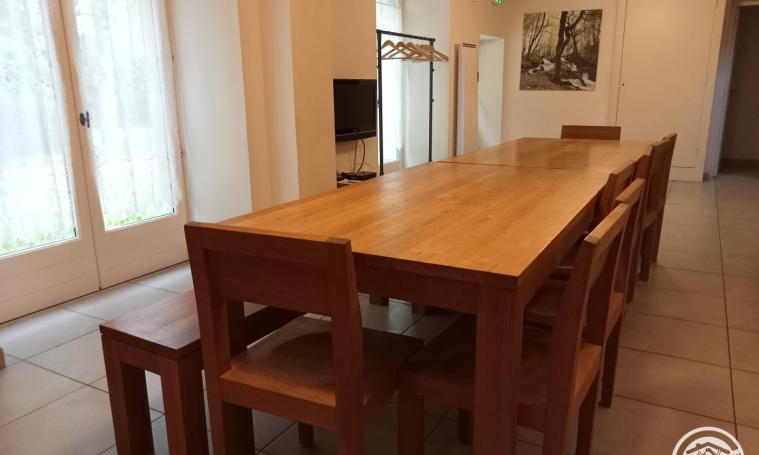 Cette ancienne grange restaurée dispose d'une une pièce à vivre, agrémentée d'un poêle à bois. La restauration de cette ancienne grange a permis de créer une vaste pièce à vivre agrémentée d'un poêle à bois ainsi que 6 chambres. La cuisine et le salon ainsi que la chambre PMR (1 lit 140, 1 lit 90) se trouvent au rez-de-chaussée. Les cinq autres chambres (10 lits 90) sont situées à l'étage. Chacune des chambres dispose de sa propre salle d'eau privative (douche - WC).