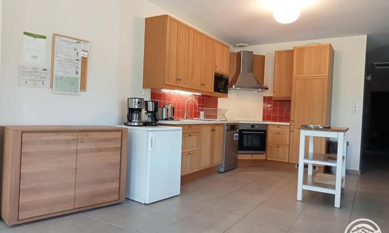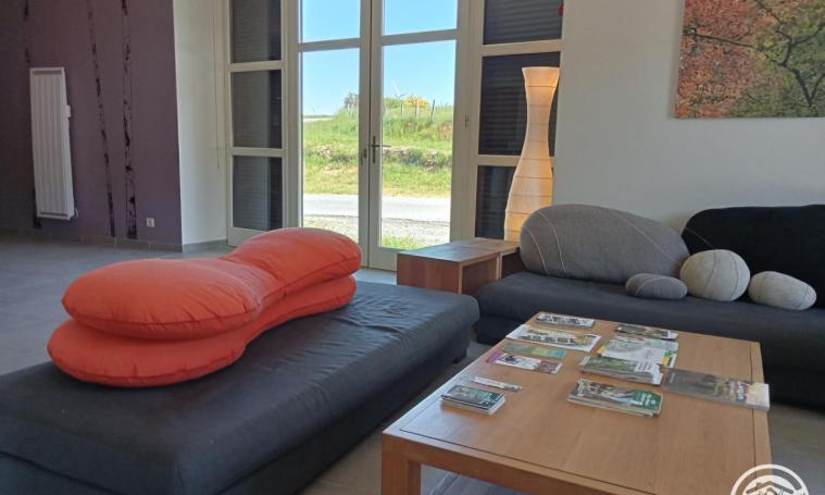 Cette ancienne grange restaurée dispose d'une une vaste pièce à vivre, agrémentée d'un poêle à bois. Au rez-de-chaussée, trois chambres (4 lits 90, 1 lit 140) et trois salles de bains avec trois WC. A l'étage, le gîte dispose également de trois autres chambres (8 lits 90), ainsi que de 3 salles de bains et 3 WC. Chacune des chambres dispose donc de sa propre salle d'eau privative (douche - WC).