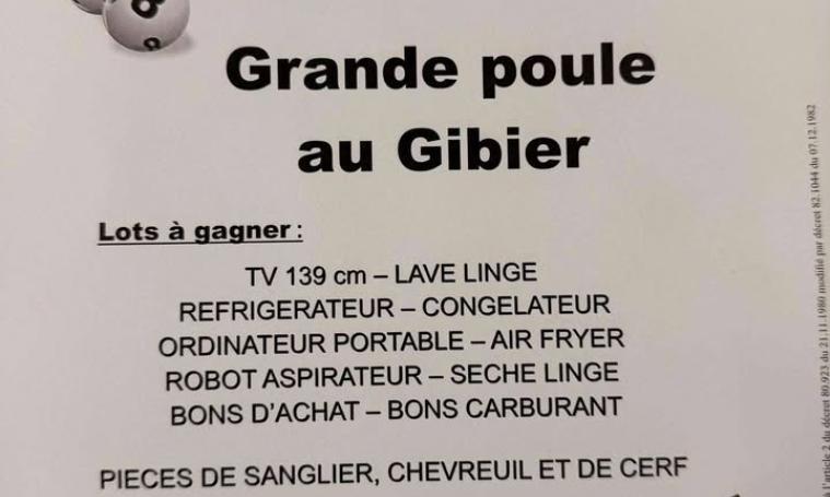 Grande Poule au Gibier organisée par la Société communale de chasse de Lubersac.