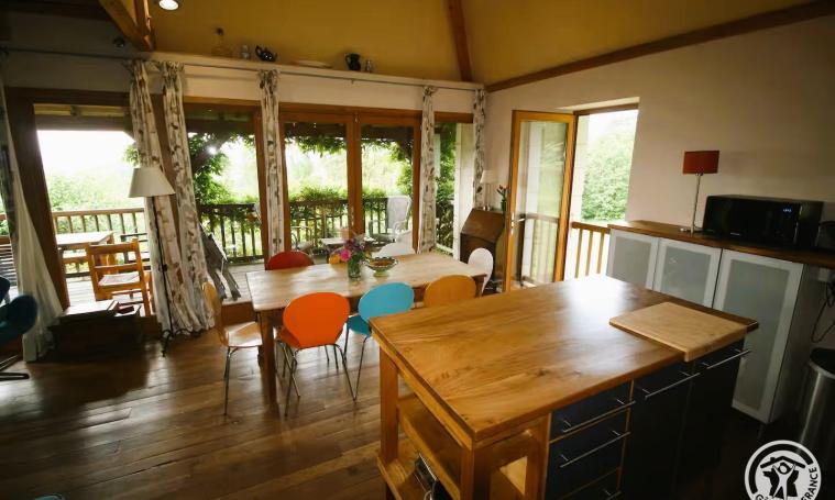 Cette belle maison en pierre se distingue par son ouverture sur l'extérieur, grâce à de grandes fenêtres et une vue imprenable sur la Vallée de la Dordogne. En franchissant le seuil, vous découvrirez un espace de vie composé du salon, de la salle à manger et d'une cuisine équipée, le tout s'ouvrant sur un vaste balcon couvert, agrémenté d'une table pouvant accueillir huit personnes. Ce niveau comprend également une chambre et une salle de bains avec WC. À l'étage inférieur, un couloir mène à trois chambres, dont deux en enfilade, ainsi qu'à une salle d'eau et un WC communs. Enfin, au dernier étage, une mezzanine, équipée d'un lit supplémentaire et d'un canapé convertible, offre un cadre idéal pour travailler, lire ou se détendre devant un film, surplombant la salle à manger à double hauteur. TOUT INCLUS : Draps, serviette de toilette, linge de maison, eau, électricité, chauffage et forfait ménage.