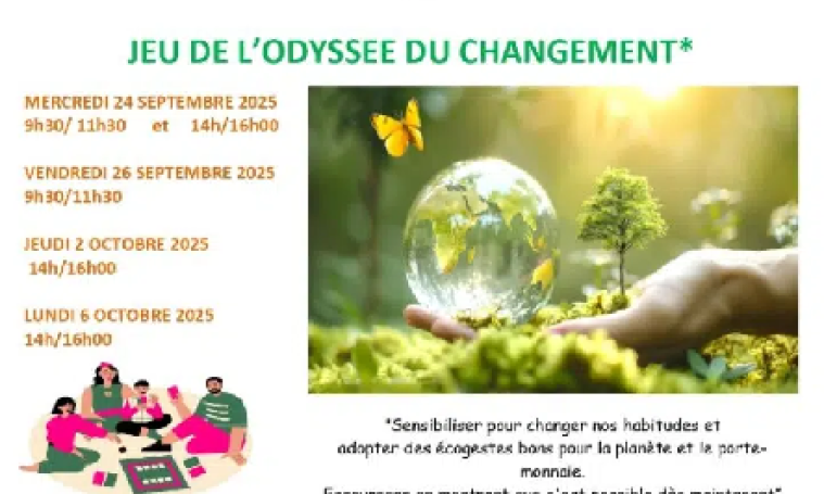 Face Limousin Périgord et le Secours catholique organise 1 session autour du jeu l’Odyssée du changement, jeu qui sensibilise tout un chacun au changement de nos habitudes adopter des écogestes nécessaire pour la planète.