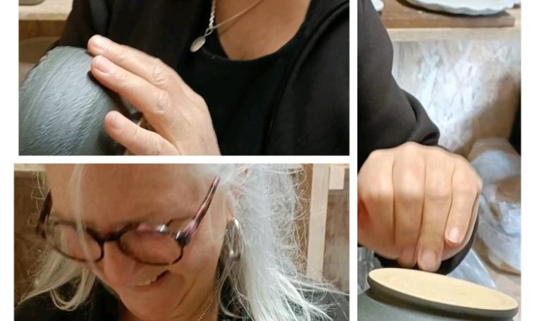 Initiation sur réservation, séance de 4 heures: Apprentissage de 3 techniques, bol pincé, tour de potier et travail à la plaque avec incrustation de végétaux ou dentelle.