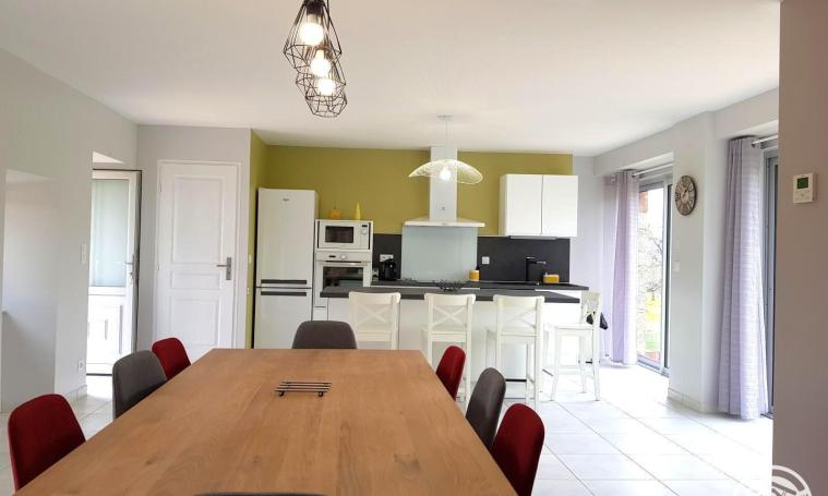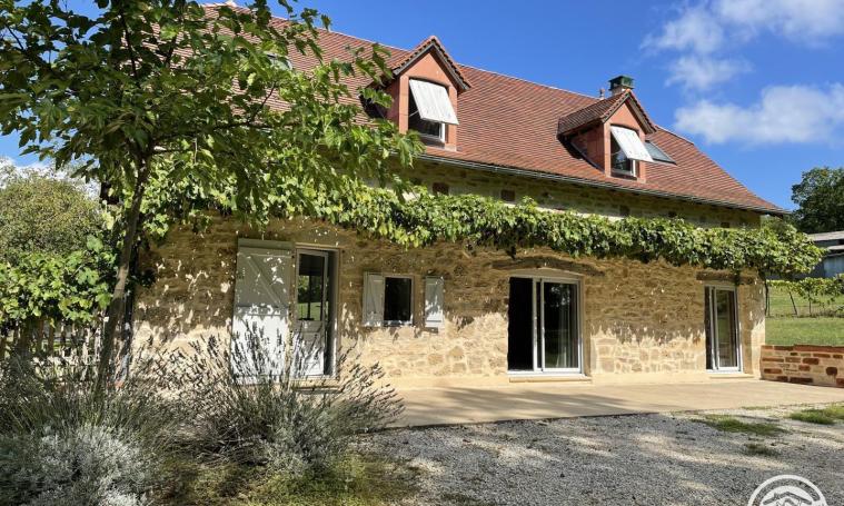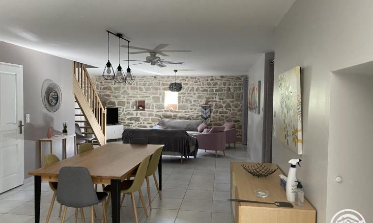 Cette superbe maison de style corrézien, entièrement rénovée, est située dans un grand terrain clôturé en pleine campagne. Très lumineuse avec ses grandes ouvertures elle offre un salon séjours de plein pied de 70 m2 comprenant une cuisine ouverte avec un bar îlot (four, frigo, congélateur, cafetière à filtre, cafetière à dosettes TASSIMO...) , une salle à manger et un espace détente avec deux canapés et deux fauteuils, une télévision ainsi que des toilettes indépendantes. A l'étage, vous trouverez une chambre avec un lit 2 places, deux chambres avec chacune un lit de 2 places et un lit d'1 place ,une salle d'eau avec une douche et des toilettes indépendants. Une pièce détente avec canapé convertible deux couchages, tablette et télévision complète l'aménagement à l'étage. Les deux terrasses avec leur salon de jardin vous permettrons de profiter d'une nature calme et préservée.