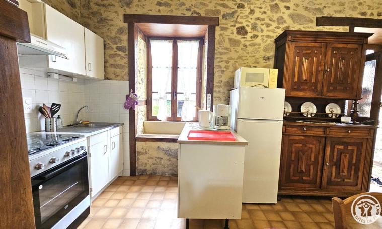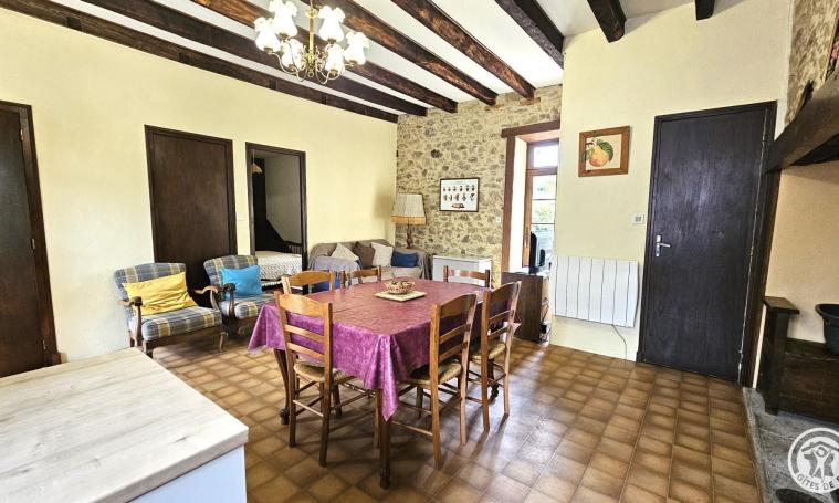 Séjour avec poutres et cheminée de 30m2 environ, coin cuisine entièrement équipée, télévision écran plat 80cm . Poêle à bois, chauffage électrique, terrasse avec accès sur le jardin. Cave avec congélateur. 3 chambres dont 2 chambres en enfilade : 1 chambre 2 personnes ( 1 lit 140), dressing 1 chambre 3 personnes (1 lit 140 + 1 lit 90 ) 1 chambre 1/2 personne (1 lit 120) Salle d'eau, WC indépendant Équipements bébé disponible si souhaité. WiFi (fibre)