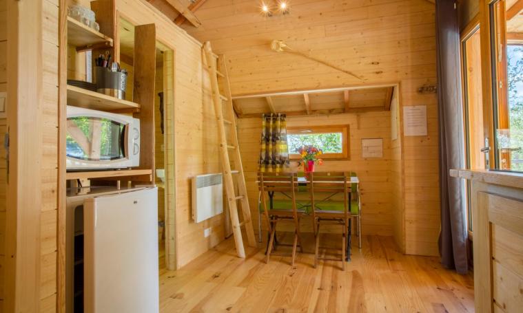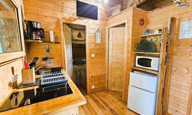 Chaleureuse en toute saison grâce à son chauffage, cette adorable cabane est située à 2.4 km du Lac du Causse. Vous disposerez d'un aménagement moderne : une salle d'eau avec douche, toilettes et lavabo, une kitchenette équipée. Une terrasse couverte vous permettra de profiter du barbecue ou des chaises longues à disposition.