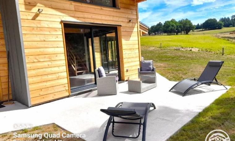 Ce chalet se compose sur le même niveau : D'une grande pièce de vie avec cuisine aménagée et équipée (cafetière combinée DE LONGUY), coin salle à manger avec poêle à bois et salon donnant directement accès à la terrasse. 2 chambres avec lits double de 160x200, une salle d'eau et un WC indépendant. Une pièce de 11m²avec Jacuzzi pour un moment de détente avec vue sur la nature . Jardin, terrasse, parking privé Une mezzanine pouvant accueillir 2 enfants supplémentaires 20€/personne et par nuit à régler au propriétaire à votre arrivée. Hébergement NON-FUMEUR