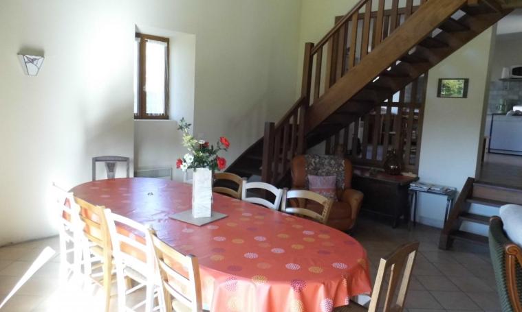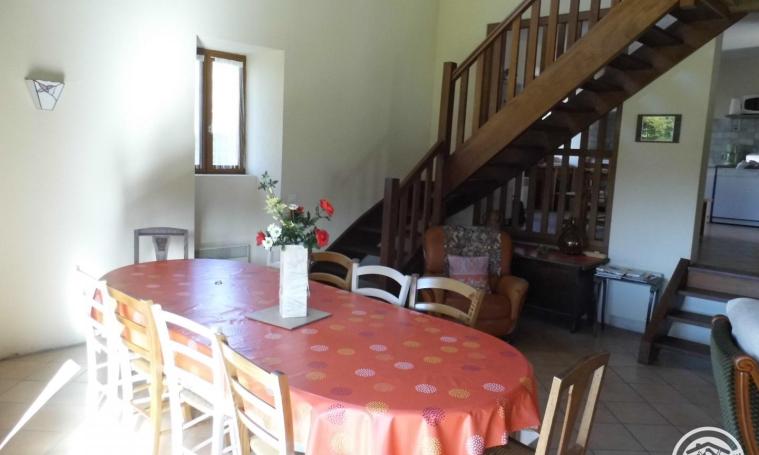 Grange entièrement restaurée, gîte d'une capacité de 5 à 10 personnes, en RDC, accès de plain-pied : salle de jeux, cuisine, 1 chambre, salle d'eau, WC indépendant, salon et salle à manger avec 3 marches descendantes. A l'étage : 5 chambres, salle de bains, 2ème WC indépendant. Les espaces de cet aménagement ont été pensés pour privilégier la sérénité des vacances en famille, les équipements complétés pour préserver la détente au quotidien. Sur l'espace extérieur vous pourrez vous combler de soleil, de liberté, le calme, bref les vacances autrement dans la verdure de la nature. Sans aucun doute, votre séjour dans La Grange de Maria restera un souvenir agréable à partager et faire partager. La présence d'animaux pendant le séjour n'est pas souhaitée (voir les conditions auprès du propriétaire