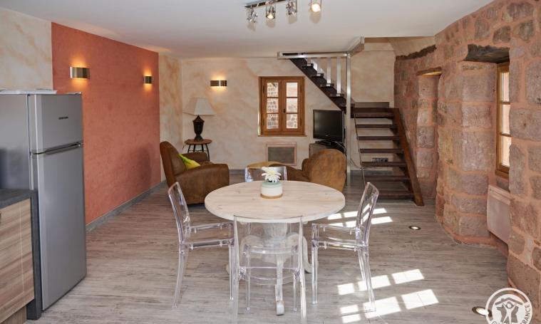 Charmant Gite en pierre de 70 m², comprenant au même niveau , un séjour/cuisine tout aménagée et équipée ,1chambre (1 avec lit de 140 ), une salle d'eau et un WC indépendant, à l'étage 1 chambre (2lits de 90) Jolie Terrasse avec salon de jardin. Terrain non clos, La piscine est ouverte du 15 juin au 15 septembre. Piscine 8X4 profondeur 1m40 avec alarme de sécurité et magnifique vu sur la campagne sans vis à vis. Le marché hebdomadaire se tient tous les dimanches matin. En juillet et en août, la commune propose également des marchés nocturnes festifs les mardis soir.Début octobre, place à la fête de la pomme avec son vide-grenier et ses dégustations. Un troc de plantes d'automne est organisé en octobre.