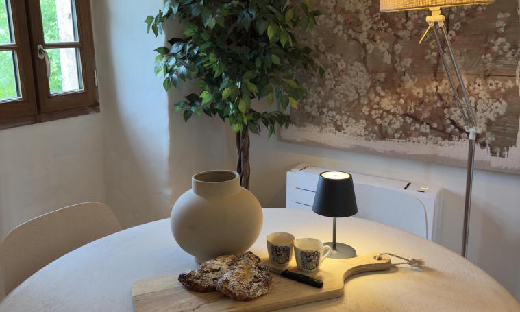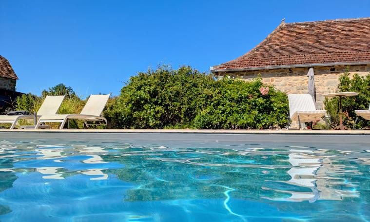 Charmante maison de vacances rénovée avec gout, pouvant accueillir 2 personnes. Elle se compose d'un grand salon avec cuisine équipée (20 m2), d'une chambre spacieuse (18 m2) avec sommier King-size (180x220) et d'une salle de bains privative moderne (8 m2) avec grande douche et WC. D'un coté de la maison, petite terrasse pour profiter de la belle vue sur la vallée de la Dordogne; de l'autre coté, le jardin aménagé pour profiter de la piscine chauffée. La maison est équipée d'un lave linge-linge, sèche linge, climatisation réversible, smart TV, WIFI. Le linge de lit et de toilette sont fournis. Las animaux ne sont pas autorisés. Location à la semaine uniquement.