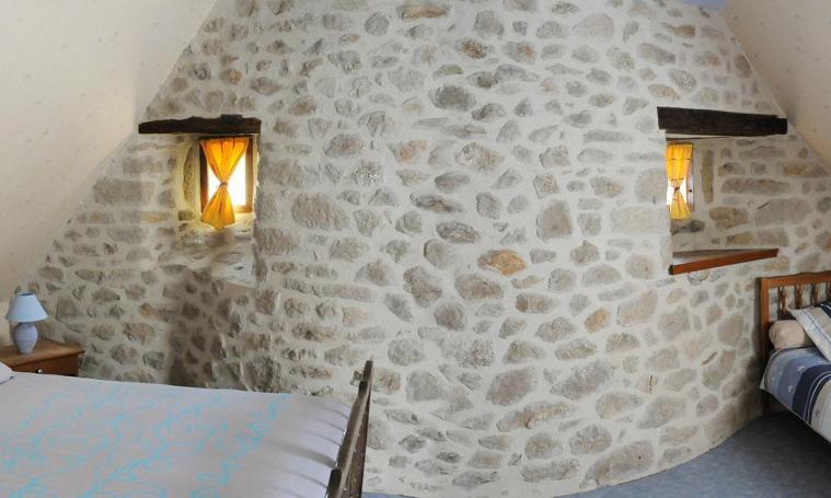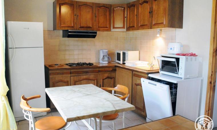 Au rez de chaussée, séjour avec poêle à bois, cuisine avec micro-ondes, four électrique, grille-pain. Salle de bains avec douche. A l'étage 2 ch (3 lits 1 place, 1 lit 2 places) et 1 WC. Draps fournis. Bois fourni. Abri voiture.