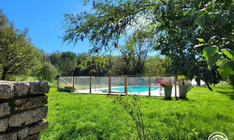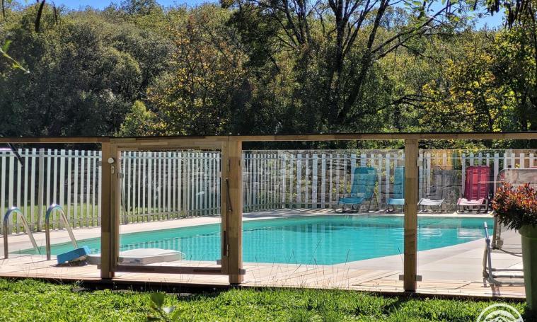 Cette maison de charme séduit immédiatement par son authenticité : une bâtisse en pierre entièrement restaurée, coiffée d'une élégante toiture en ardoise et nichée dans un cadre verdoyant. Deux terrasses, dont une ombragée, invitent à profiter pleinement des extérieurs à tout moment de la journée. Une piscine sécurisée de 11x5 m complète idéalement l'ensemble, parfaite pour les familles et les moments de détente estivaux. Le gîte offre un confort remarquable grâce à une rénovation soignée, mettant en valeur des matériaux nobles et une décoration chaleureuse. Toutes les pièces sont climatisées.