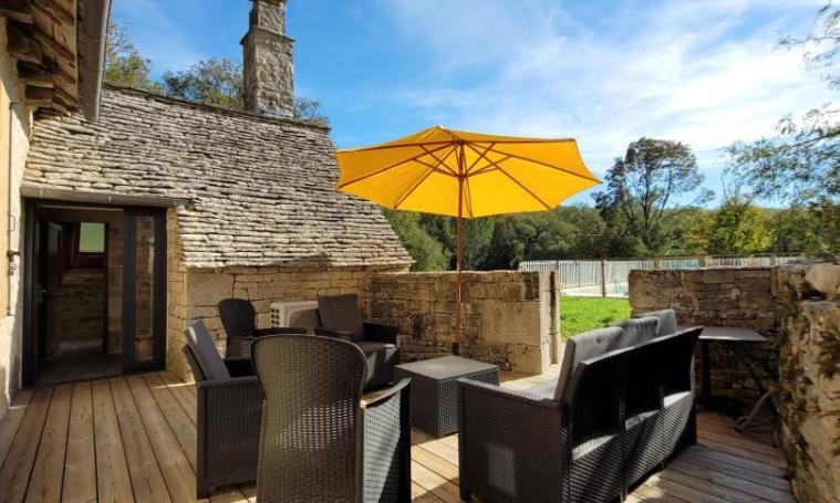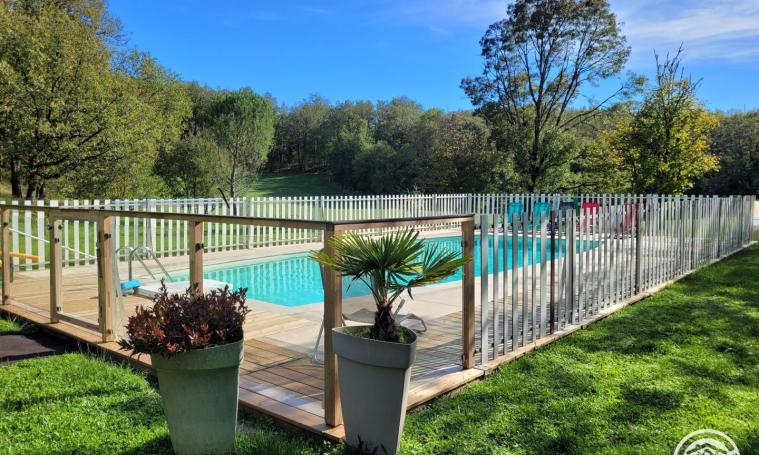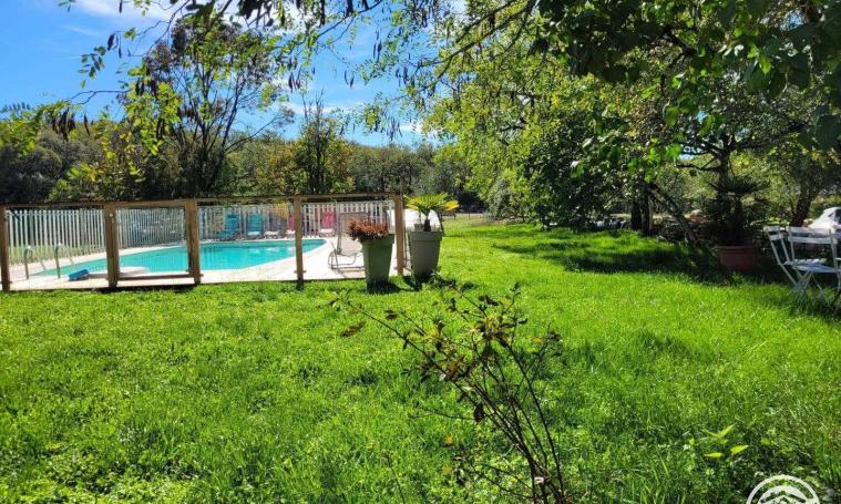 Cette maison de charme séduit immédiatement par son authenticité : une bâtisse en pierre entièrement restaurée, coiffée d'une élégante toiture en ardoise et nichée dans un cadre verdoyant. Deux terrasses, dont une ombragée, invitent à profiter pleinement des extérieurs à tout moment de la journée. Une piscine sécurisée de 11x5 m complète idéalement l'ensemble, parfaite pour les familles et les moments de détente estivaux. Le gîte offre un confort remarquable grâce à une rénovation soignée, mettant en valeur des matériaux nobles et une décoration chaleureuse. Toutes les pièces sont climatisées.