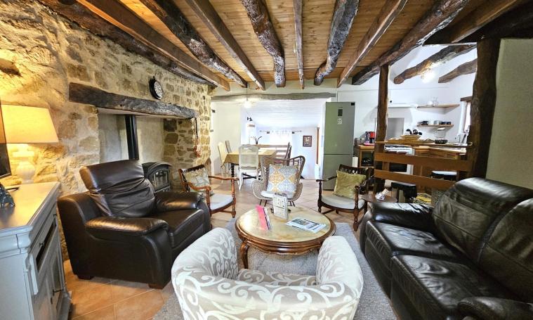 Vous devrez descendre quelques marches pour atteindre au gîte. En entrant, vous serez accueilli par un petit hall d'entrée qui vous orientera vers une salle d'eau, équipée d'une douche et de toilettes communes. En montant quatre marches, vous découvrirez un espace de vie agréable, composé d'un salon, d'un séjour et d'une cuisine. De plus, une chambre confortable vous attend, dotée d'un lit de 160 cm, offrant une vue apaisante sur le jardin et la piscine, avec des moustiquaires sur les deux fenêtres pour votre confort. À l'étage, vous trouverez deux chambres : l'une dispose d'un lit de 160 cm, l'autre est équipée d'un lit de 90 cm, toutes deux dotées de la climatisation réversible. Le chauffage est électrique. Pour le bois de chauffage (achat directement au propriétaire). Certaines options sont non comprises dans le prix (supplément à prévoir)