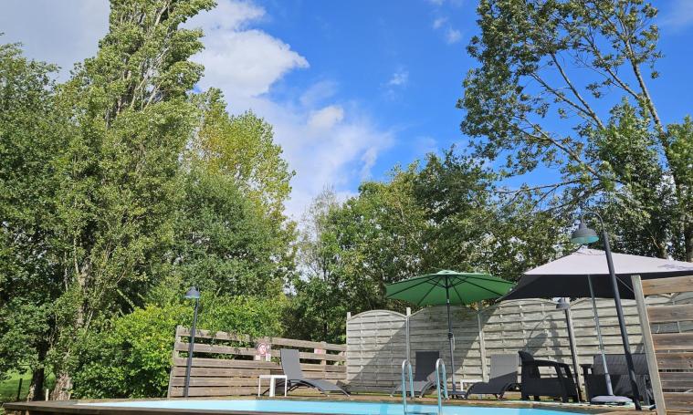 Le gîte, niché à Cublac et à proximité de la résidence du propriétaire, bénéficie d'une situation privilégiée à proximité des axes autoroutiers A20 et A89, ainsi que de l'aéroport de Brive-Souillac. Entouré de vastes prairies et de bois, il offre un cadre paisible et serein, propice à la détente et à l'évasion. La vue se déploie sur de charmants jardins, embellie par une piscine extérieure hors sol, qui n'est pas chauffée. Cet ensemble est complété par une grande terrasse en bois privée de 9 par 5 mètres, créant un espace idéal pour se détendre et s'évader au cœur de la nature, tout en appréciant le cadre environnant. A NOTER : NON FUMEUR