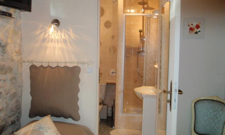 Bouilloire dans la chambre avec thé, tisane et café à votre convenance. Un réfrigérateur et congélateur sont aussi à votre disposition.