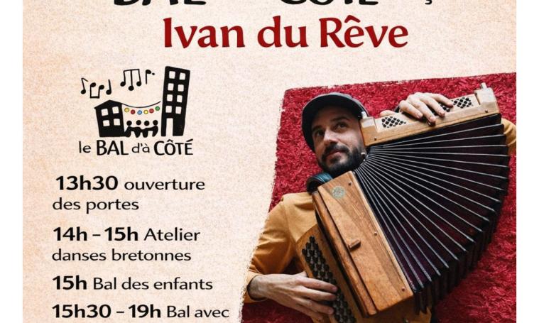 13 h 30 : ouverture des portes - 14 h/15 h : Atelier danses bretonnes - 15 h : Bal des enfants - 15 h 30/19 h Bal avec Ivan du Rêve et Bœuf avec les musicien.n.e.s du Bal d'à Côté - Amenez vos instruments ! Chapeau pour la PAF - Goûter sur place avec boissons et gâteaux -