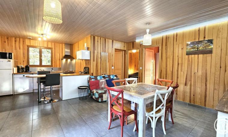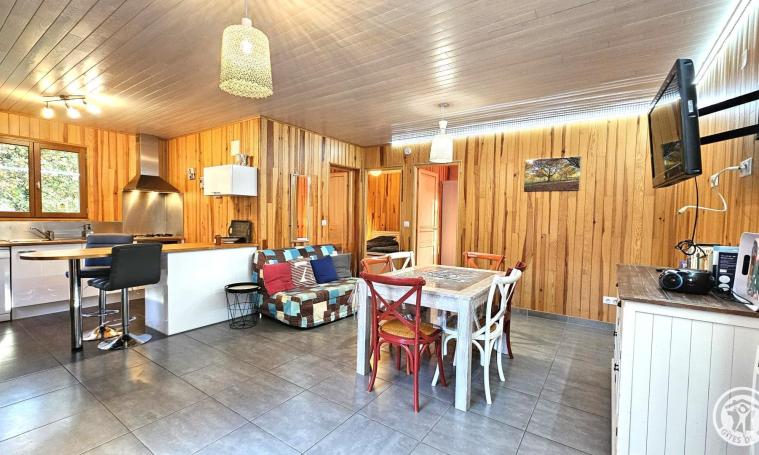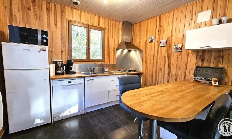 Un chalet douillet indépendant et de plain-pied alliant confort et modernité qui possède une terrasse exposée nord-ouest face à un bel étang (de quasiment 1 hectare), où vous pourrez vous détendre et observer la nature environnante. Vous aurez accès à deux chambres (l'une avec 2 lits en 90 et la seconde avec un lit en 140) ainsi qu'un séjour avec coin cuisine, une salle d'eau et des WC. Le gite dispose d'un chauffage électrique. A l'extérieur vous pourrez profiter d'un salon de jardin, d'un barbecue et de jeux de plein air pour les enfants (balançoire, toboggan). Équipement de bébé sur demande.