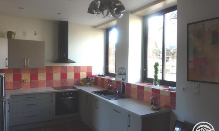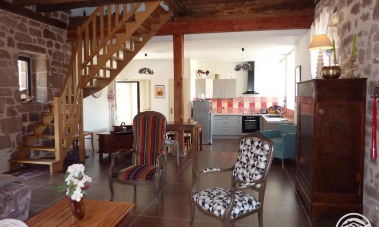 Cette maison en pierre de Pays se compose au rez-de-chaussée, d'une grande pièce de vie avec coin cuisine aménagée et équipée "marche descendante" , un salon avec Insert, un WC indépendant et une buanderie. Accès direct aux terrasses. A l'étage, le gîte dispose de deux chambres climatisées, l'une avec lit double de 160 et l'autre avec lit double de 140, une salle d'eau (avec douche) et WC. Deux terrasses dont une couverte de 7m² avec jardin clos, permettent de profiter des extérieurs. Parking privé WIFI