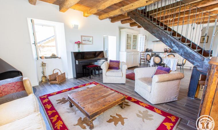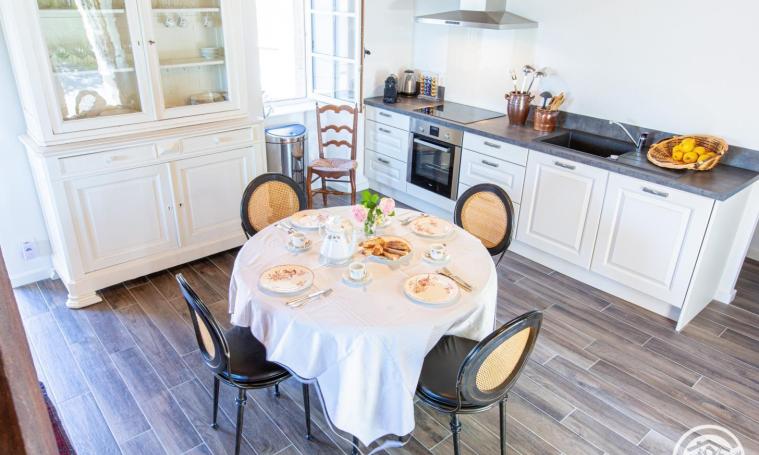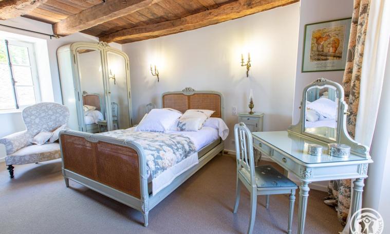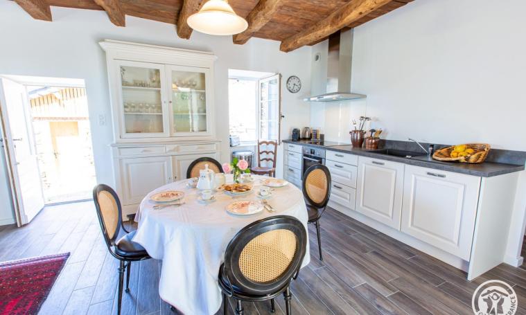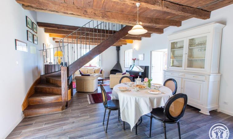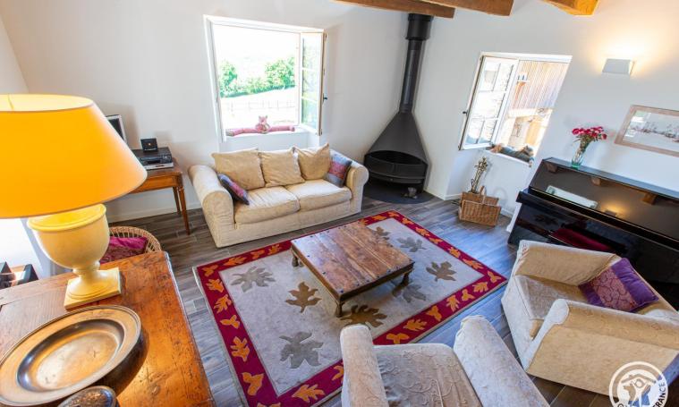 Gîte de charme 4/5 personnes composé au rez-de-chaussée d'une cuisine ouverte équipée, un salon / salle à manger avec cheminée fonctionnelle (bois fourni), un WC indépendant puis, à l'étage, de 2 chambres (l'une avec un lit en 140 et l'autre avec un lit en 140 + un lit en 90) et d'une salle d'eau avec WC. A l'extérieur, le grand jardin clos (1/2 ha) sans vis à vis, vous offre une vue splendide, dégagée sur l'horizon et sur la campagne environnante. Jeux à disposition pour profiter de vos vacances entre amis ou en famille : jeux de société, badminton, ping-pong. Pour les cyclistes ou les motards, possibilité de stocker vos montures à l'abri dans un local attenant. Le petit plus : panier petit-déjeuner pour le séjour incluant boissons chaudes, beurre, confiture, lait, jus de fruit, biscottes artisanales et céréales inclus dans le prix également.
