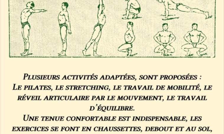 Seront proposées pilates, stretching, travail de mobilité, réveil articulaire par le mouvement.