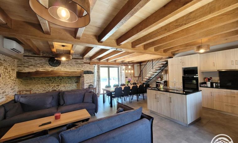 Le gîte entièrement climatisé se compose : Au RDC de : son immense pièce de vie (grand salon télé et salle à manger) avec cuisine toute équipée, une première chambre avec lit simple en 160, une deuxième chambre avec lit double en160 (modulable en 1 lit de 160 ou 2lits de 80), une première salle d'eau avec douche et double vasque et un WC séparé équipé d'un lave mains. A l'étage : 3 chambres spacieuses (2 avec lit simple en 160 et l'autre avec lit double en 160 toujours modulable), une deuxième salle d'eau avec douche et double vasques et un deuxième WC séparé équipé d'un lave mains. A l'extérieur : une buanderie équipée d'un troisième WC (spécial piscine), 2 grandes terrasses, une piscine privée, chauffée, sécurisée par volet électrique, 9*4 au sel (profondeur 1,5 mètres, fond plat) et d'un vaste parking privatif. Voyagez léger : nous fournissons linge de lit, linge de toilette, tapis de bain, torchons, gel douche, shampoing, papier toilette, ainsi que le café et le thé d'accueil.