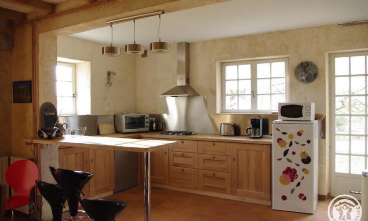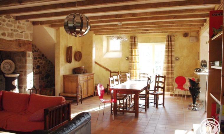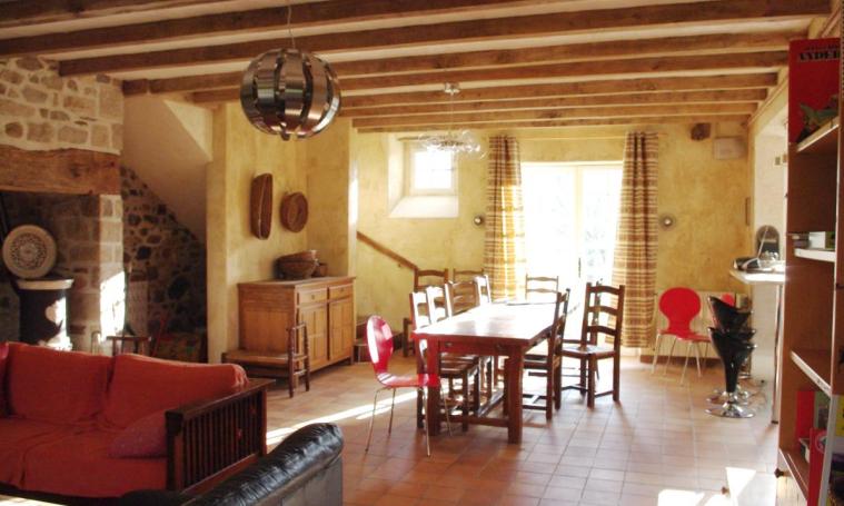 Gîte indépendant à proximité de la résidence du propriétaire. 4 chambres (4 lits 90, 2 lits 140), grand séjour avec coin cuisine et coin salon, lecteur de DVD, salle d'eau et 2 salles de bains, 3 WC, poêle à bois, chauffage au fioul. terrasses Hébergement qualifié GITE DE PÊCHE