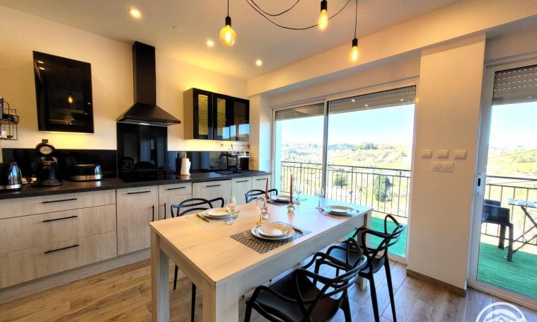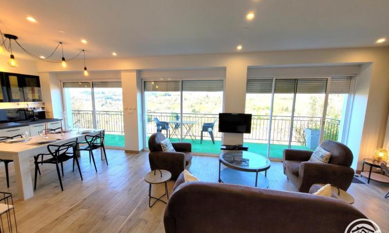 Un lieu idéal pour se ressourcer à quatre , en famille ou entre amis, tout en profitant des charmes de la Corrèze. Le Panorama se compose: D'une belle pièce de vie avec Salon/salle à manger cuisine avec accès balcon. Accès par 2 marches à l'espace nuit 1 chambres avec 2 lits de 90x190 avec sa une salle d'eau privative. 1 chambre avec 1 lit de 160x200 avec sa une salle d'eau privative accès terrasse Un WC indépendant. Stationnement dans la propriété Le terrain n'est pas adaptés aux jeunes enfants Wifi et TV TOUT INCLUS :Draps, serviettes, ménage et chauffage.
